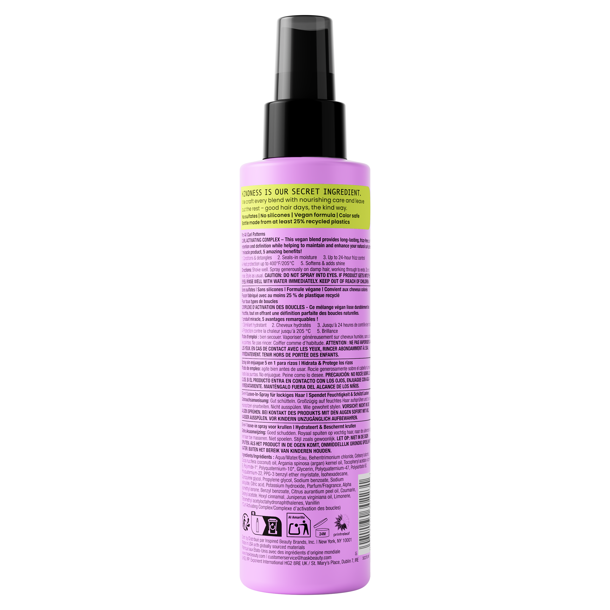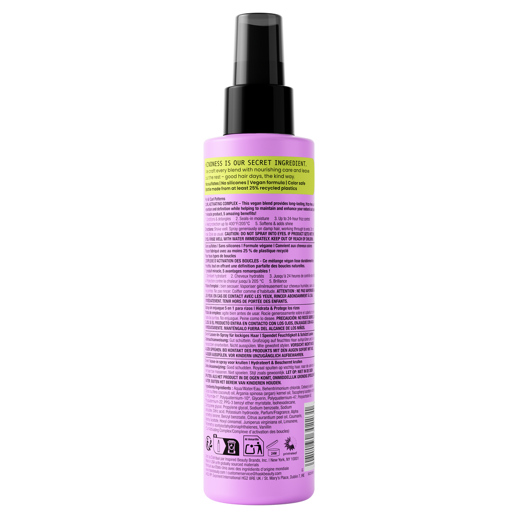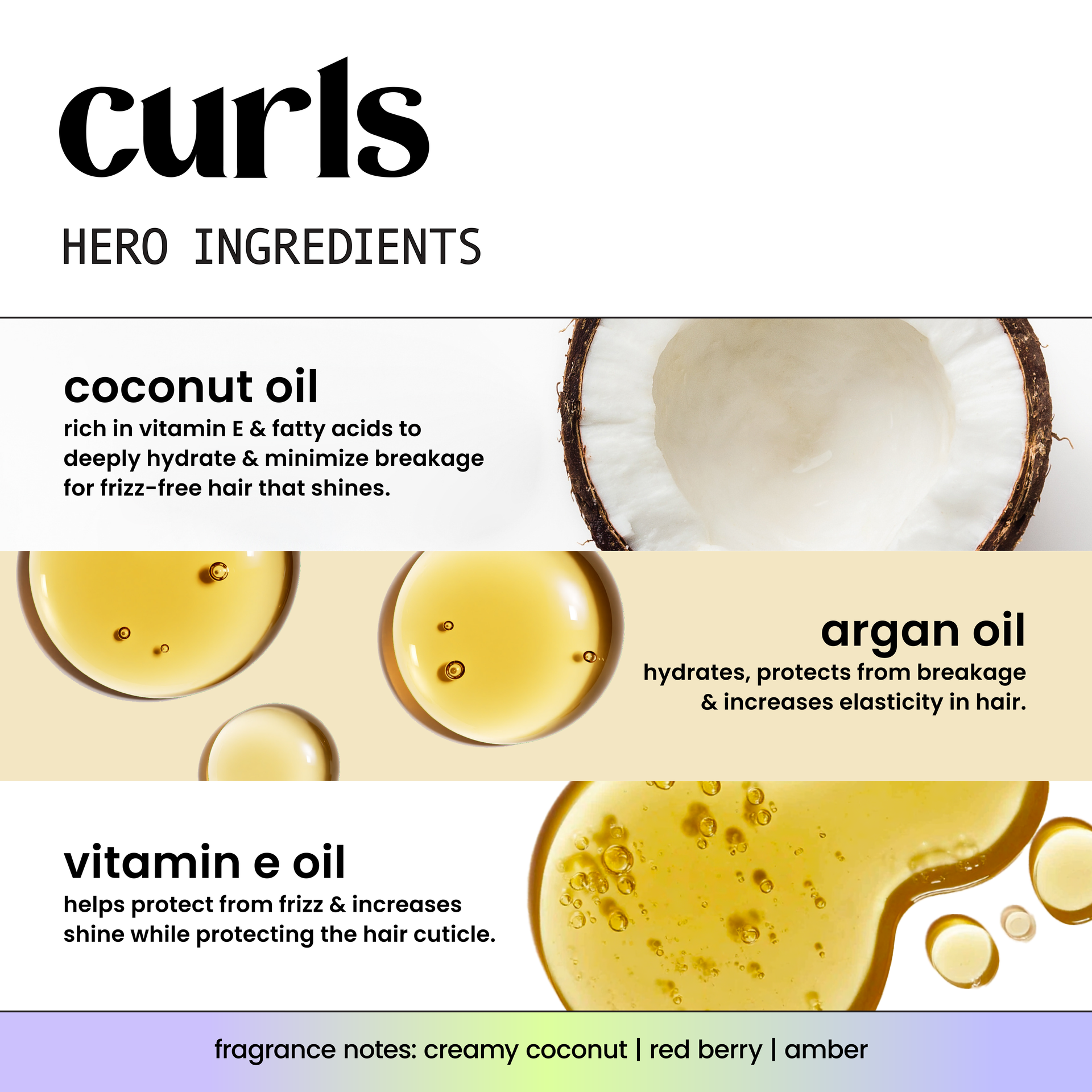 Aqua/Water/Eau, Behentrimonium chloride, Cetearyl alcohol, Cocos nucifera (coconut) oil, Argania spinosa (argan) kernel oil, Tocopheryl acetate (vitamin E), Polyimide-1*, Polyquaternium-10*, Glycerin, Polyquaternium-47, Polysorbate 60, Polyquaternium-22, PPG-3 benzyl ether myristate, Isohexadecane, Dipropylene glycol, Propylene glycol, Sodium benzoate, Sodium salicylate, Potassium hydroxide, Parfum/Fragrance, Alpha isomethyl ionone, Benzyl benzoate, Cinnamyl alcohol, Coumarin, Geranyl acetate, Hexyl cinnamal, Limonene, Rose ketones, Tetramethyl acetyloctahydronaphthalenes, Vanillin (*Curl Activating Complex/Complexe d'activation des boucles)